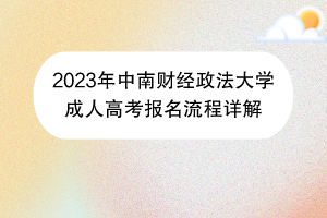 2023年 中南财经政法大学成人高考 报名流程详解已公布!为了提升自己的学历并获得更好的就业机会,许多同学们选择通过成人教育来提升自己的文凭。然而,在追求这个目标之前,大家必须确保完成报名程序。202......